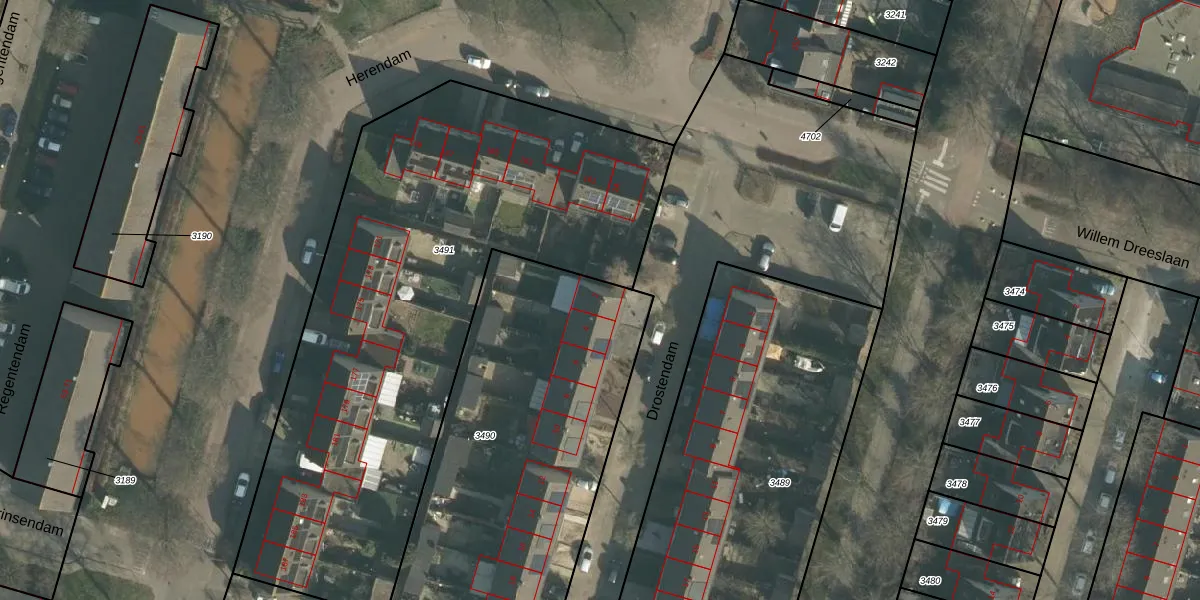 Het perceel waarop Drostendam 2 staat heeft een oppervlakte van 1785 m². Dit is een zeer groot perceel. De perceeloppervlakte wordt geregistreerd door het Kadaster. Gedetailleerde informatie over de maten van dit perceel kunt u vinden in het rapport Kadastrale kaart met maatvoering van Drostendam 2.