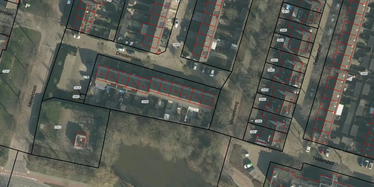 Het perceel waarop Drostendam 27 staat heeft een oppervlakte van 1713 m². Dit is een zeer groot perceel. De perceeloppervlakte wordt geregistreerd door het Kadaster. Gedetailleerde informatie over de maten van dit perceel kunt u vinden in het rapport Kadastrale kaart met maatvoering van Drostendam 27.