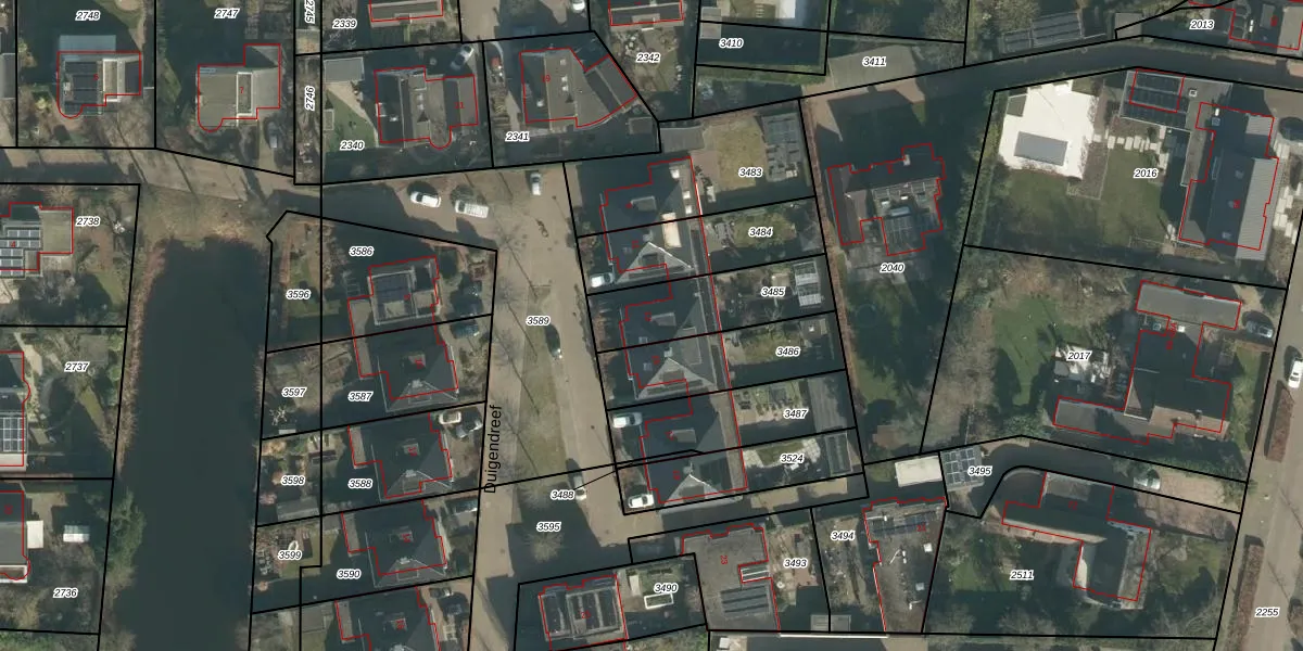 Gebruik de zoekbalk of klik op een perceel voor informatie over de adressen binnen dit perceel.