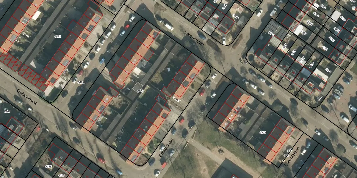 Het perceel waarop Edisonlaan 26 staat heeft een oppervlakte van 3462 m². Dit is een zeer groot perceel. De perceeloppervlakte wordt geregistreerd door het Kadaster. Gedetailleerde informatie over de maten van dit perceel kunt u vinden in het rapport Kadastrale kaart met maatvoering van Edisonlaan 26.