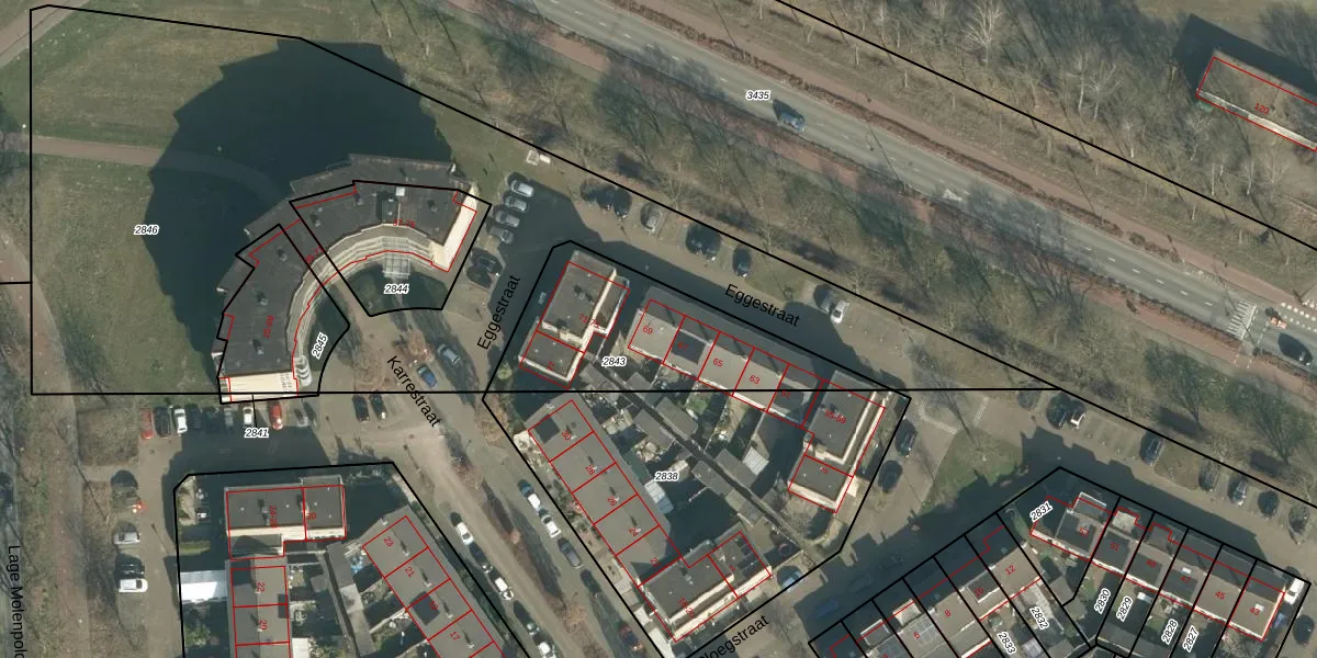 Het perceel waarop Eggestraat 69 staat heeft een oppervlakte van 741 m². Dit is een groot perceel. De perceeloppervlakte wordt geregistreerd door het Kadaster. Gedetailleerde informatie over de maten van dit perceel kunt u vinden in het rapport Kadastrale kaart met maatvoering van Eggestraat 69.
