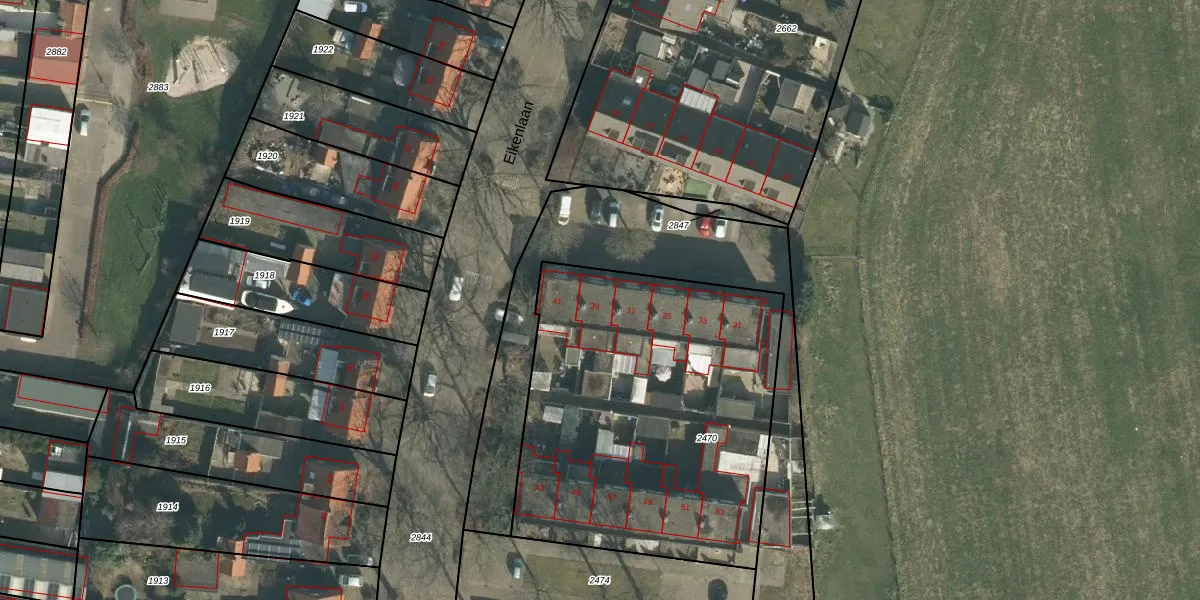 Het perceel waarop Eikenlaan 39 staat heeft een oppervlakte van 1890 m². Dit is een zeer groot perceel. De perceeloppervlakte wordt geregistreerd door het Kadaster. Gedetailleerde informatie over de maten van dit perceel kunt u vinden in het rapport Kadastrale kaart met maatvoering van Eikenlaan 39.