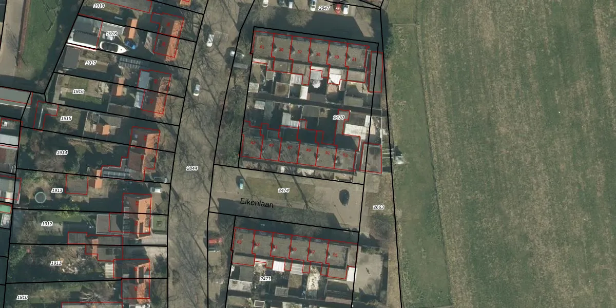 Het perceel waarop Eikenlaan 49 staat heeft een oppervlakte van 1890 m². Dit is een zeer groot perceel. De perceeloppervlakte wordt geregistreerd door het Kadaster. Gedetailleerde informatie over de maten van dit perceel kunt u vinden in het rapport Kadastrale kaart met maatvoering van Eikenlaan 49.