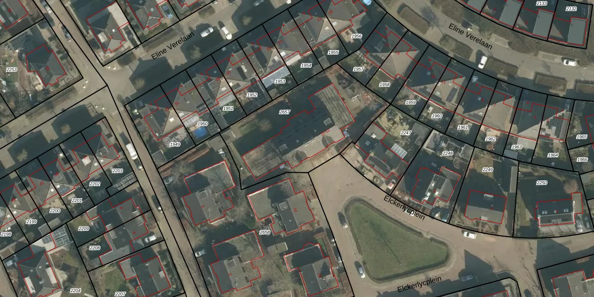 Het perceel waarop Elckerlycplein 12 staat heeft een oppervlakte van 1260 m². Dit is een zeer groot perceel. De perceeloppervlakte wordt geregistreerd door het Kadaster. Gedetailleerde informatie over de maten van dit perceel kunt u vinden in het rapport Kadastrale kaart met maatvoering van Elckerlycplein 12.