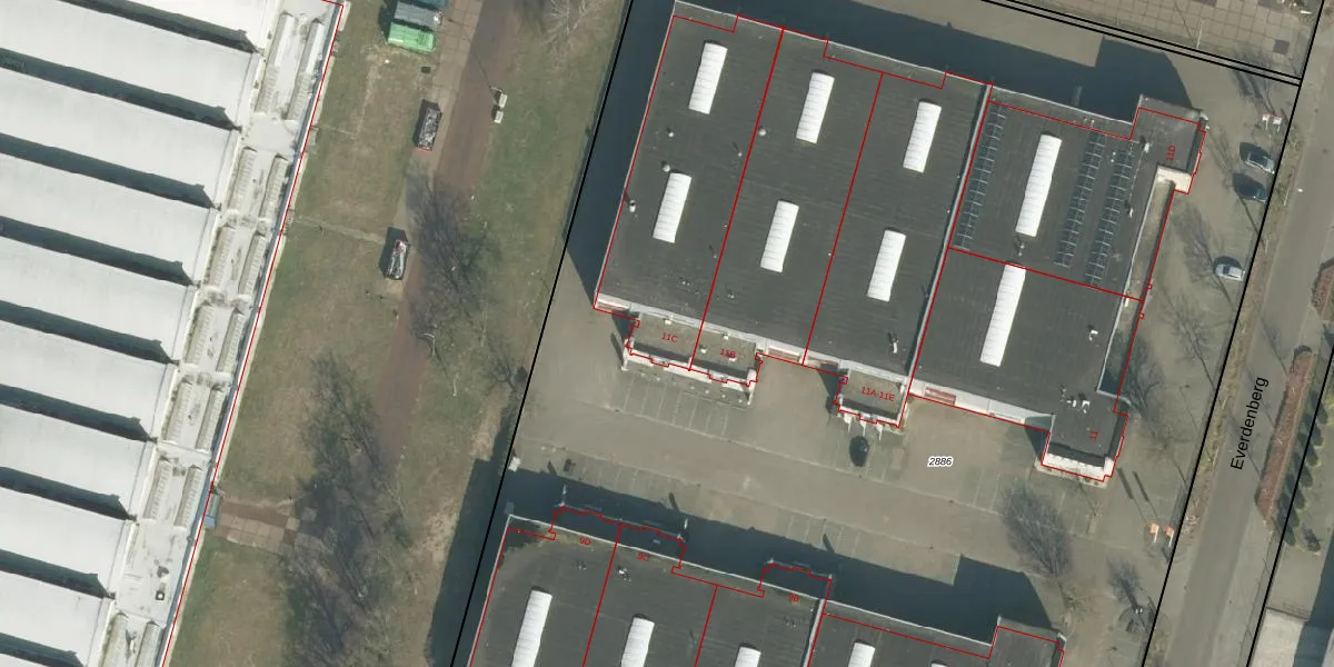 Het perceel waarop Everdenberg 11-C staat heeft een oppervlakte van 1,3 ha. Dit is een zeer groot perceel. De perceeloppervlakte wordt geregistreerd door het Kadaster. Gedetailleerde informatie over de maten van dit perceel kunt u vinden in het rapport Kadastrale kaart met maatvoering van Everdenberg 11-C.