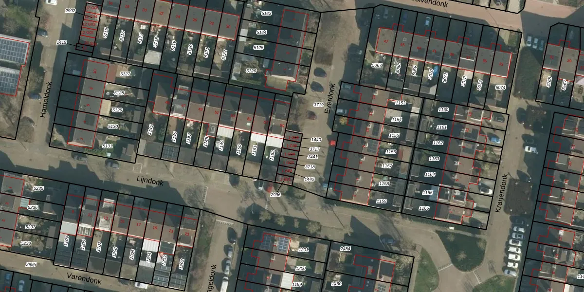 Gebruik de zoekbalk of klik op een perceel voor informatie over de adressen binnen dit perceel.