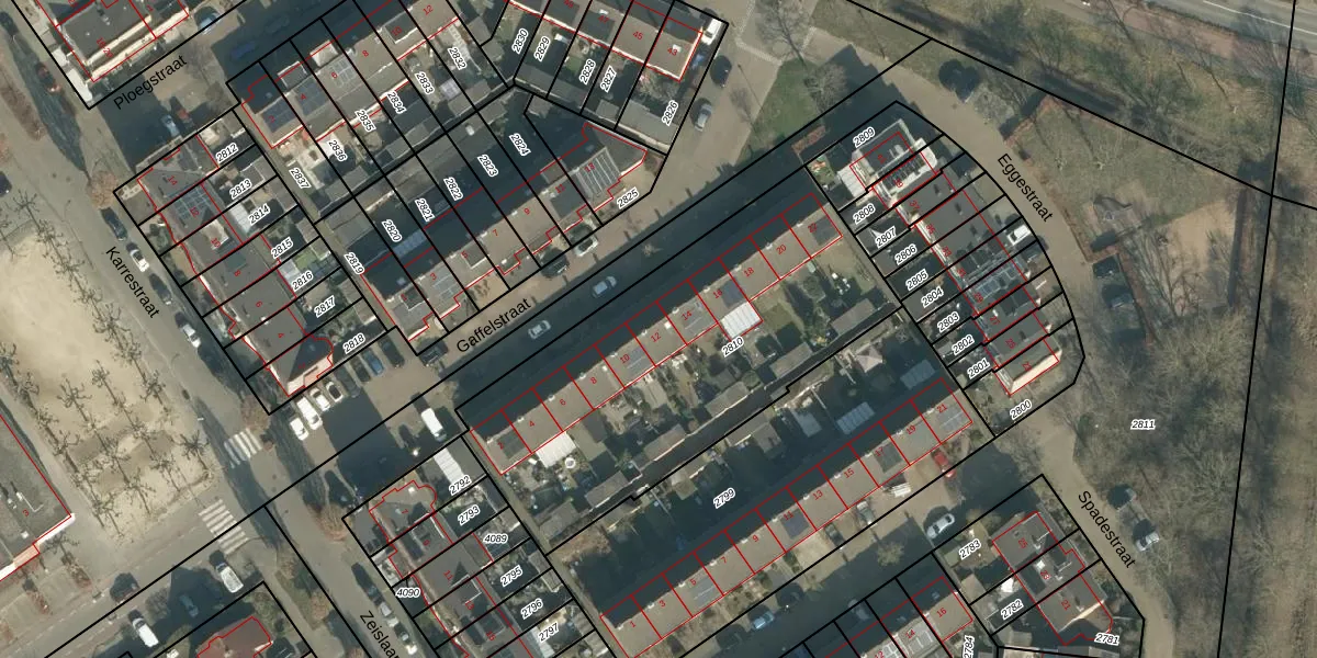 Gaffelstraat 12 is gelegen op kadastraal perceel OTH01N2810. Deze kadastrale aanduiding is uniek en wordt gebruikt door het Kadaster om eigendomsrechten en andere zakelijke rechten vast te leggen. Het perceel maakt onderdeel uit van de kadastrale gemeente Oosterhout.