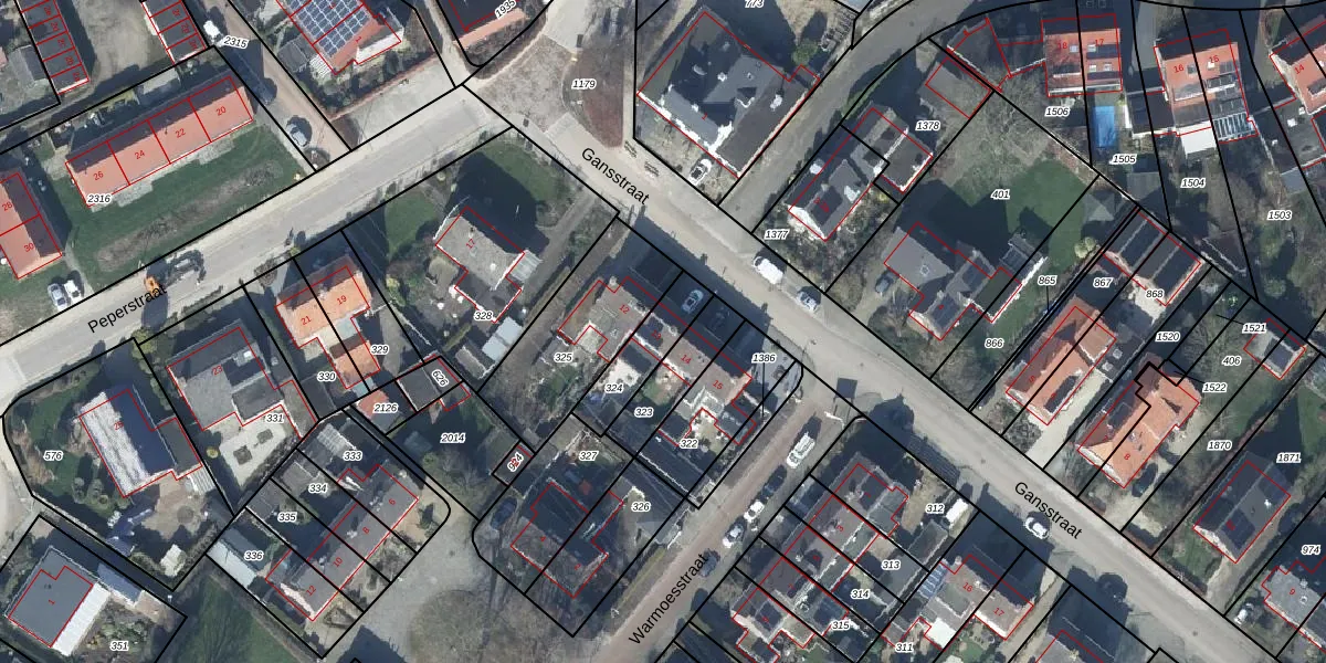 Gansstraat 13 is gelegen op kadastraal perceel VBG02L324. Deze kadastrale aanduiding is uniek en wordt gebruikt door het Kadaster om eigendomsrechten en andere zakelijke rechten vast te leggen. Het perceel maakt onderdeel uit van de kadastrale gemeente Valburg.