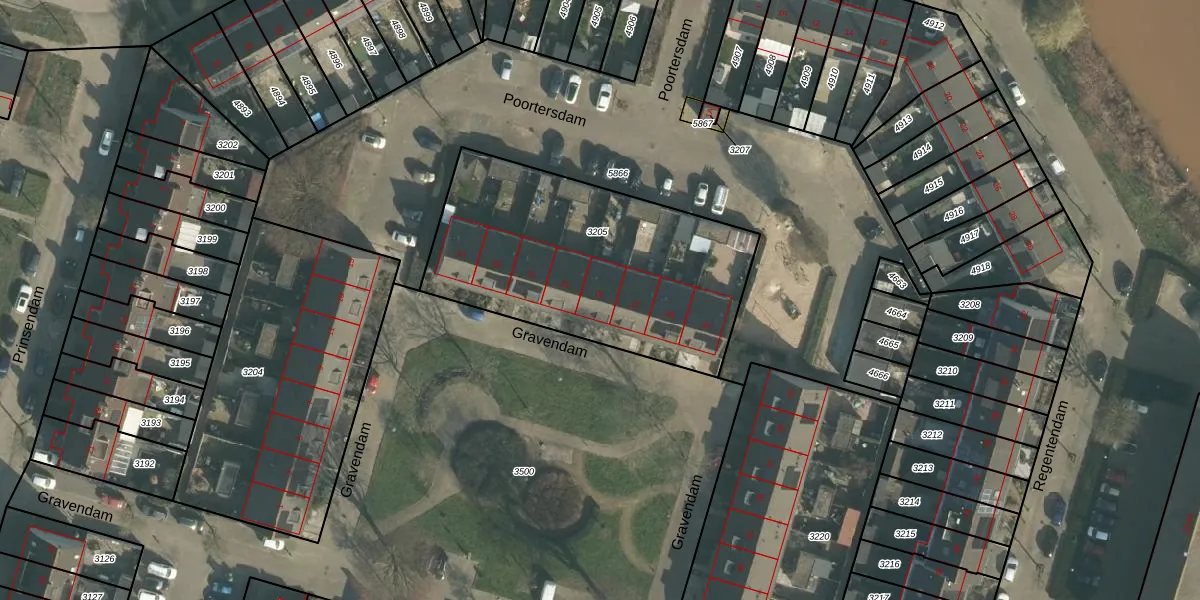 Het perceel waarop Gravendam 25 staat heeft een oppervlakte van 1294 m². Dit is een zeer groot perceel. De perceeloppervlakte wordt geregistreerd door het Kadaster. Gedetailleerde informatie over de maten van dit perceel kunt u vinden in het rapport Kadastrale kaart met maatvoering van Gravendam 25.