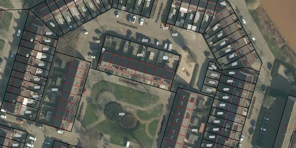 Het perceel waarop Gravendam 27 staat heeft een oppervlakte van 1294 m². Dit is een zeer groot perceel. De perceeloppervlakte wordt geregistreerd door het Kadaster. Gedetailleerde informatie over de maten van dit perceel kunt u vinden in het rapport Kadastrale kaart met maatvoering van Gravendam 27.