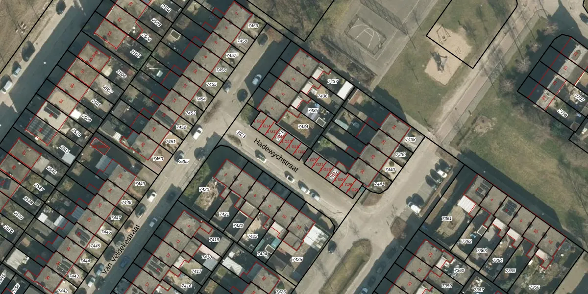 Hadewychstraat 1-G18 is gelegen op kadastraal perceel OTH01M3021. Deze kadastrale aanduiding is uniek en wordt gebruikt door het Kadaster om eigendomsrechten en andere zakelijke rechten vast te leggen. Het perceel maakt onderdeel uit van de kadastrale gemeente Oosterhout.