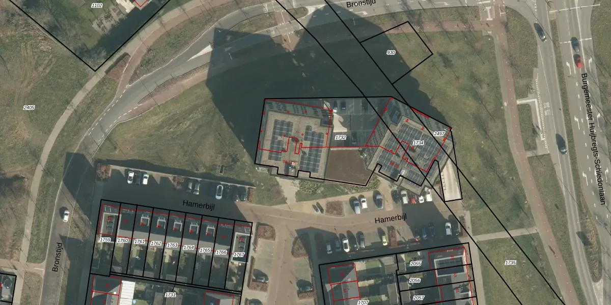 Het perceel waarop Hamerbijl 102 staat heeft een oppervlakte van 1151 m². Dit is een zeer groot perceel. De perceeloppervlakte wordt geregistreerd door het Kadaster. Gedetailleerde informatie over de maten van dit perceel kunt u vinden in het rapport Kadastrale kaart met maatvoering van Hamerbijl 102.