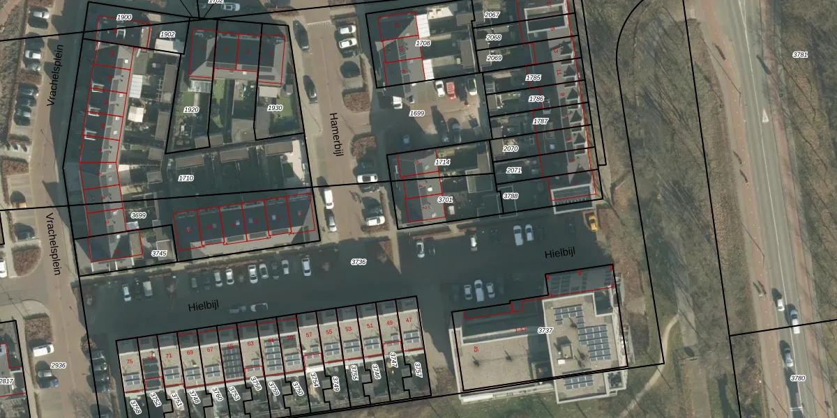 Het perceel waarop Hamerbijl 2 staat heeft een oppervlakte van 269 m². Dit is een middelgroot perceel. De perceeloppervlakte wordt geregistreerd door het Kadaster. Gedetailleerde informatie over de maten van dit perceel kunt u vinden in het rapport Kadastrale kaart met maatvoering van Hamerbijl 2.