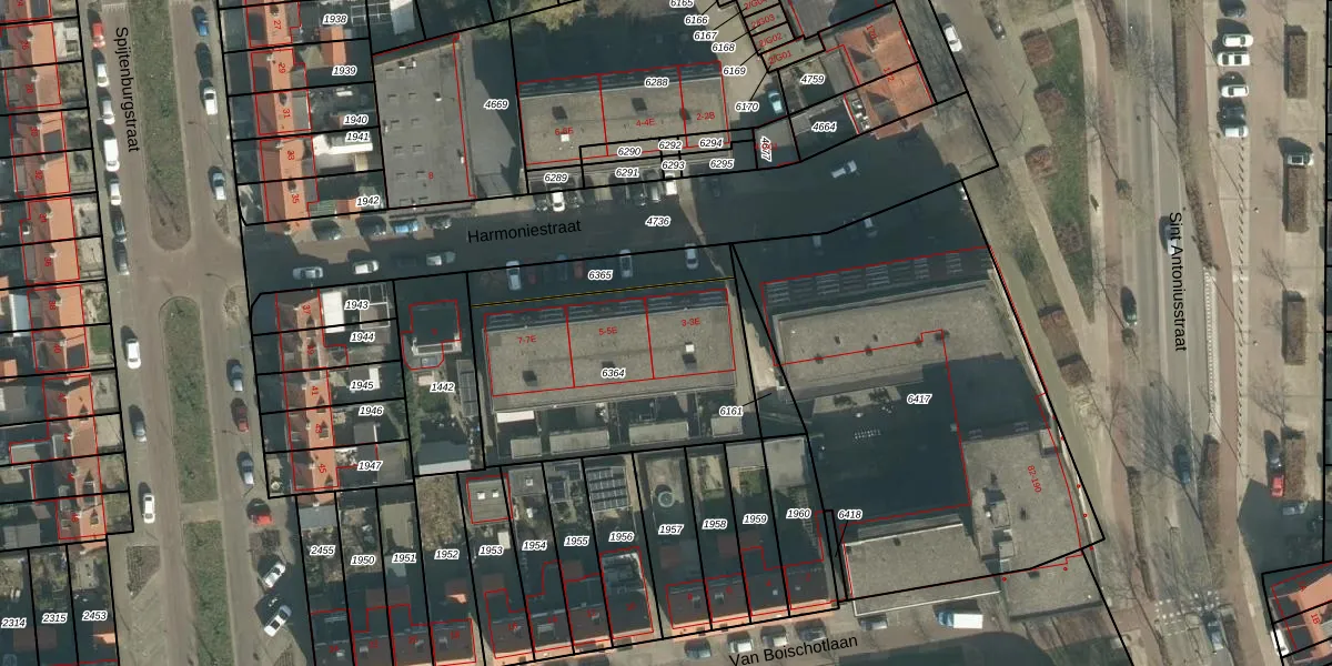 Harmoniestraat 3-C is gelegen op kadastraal perceel OTH01M6364. Deze kadastrale aanduiding is uniek en wordt gebruikt door het Kadaster om eigendomsrechten en andere zakelijke rechten vast te leggen. Het perceel maakt onderdeel uit van de kadastrale gemeente Oosterhout.