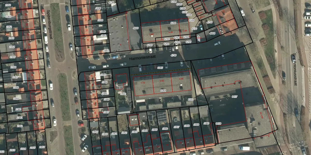 Harmoniestraat 5-A is gelegen op kadastraal perceel OTH01M6364. Deze kadastrale aanduiding is uniek en wordt gebruikt door het Kadaster om eigendomsrechten en andere zakelijke rechten vast te leggen. Het perceel maakt onderdeel uit van de kadastrale gemeente Oosterhout.