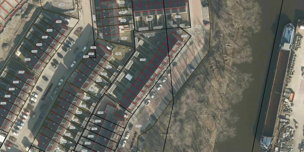 Het perceel waarop Havenkade 43 staat heeft een oppervlakte van 1285 m². Dit is een zeer groot perceel. De perceeloppervlakte wordt geregistreerd door het Kadaster. Gedetailleerde informatie over de maten van dit perceel kunt u vinden in het rapport Kadastrale kaart met maatvoering van Havenkade 43.