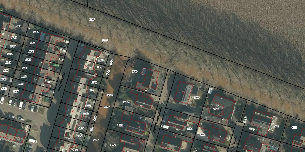Het perceel waarop Heemraadsdam 13 staat heeft een oppervlakte van 527 m². Dit is een groot perceel. De perceeloppervlakte wordt geregistreerd door het Kadaster. Gedetailleerde informatie over de maten van dit perceel kunt u vinden in het rapport Kadastrale kaart met maatvoering van Heemraadsdam 13.