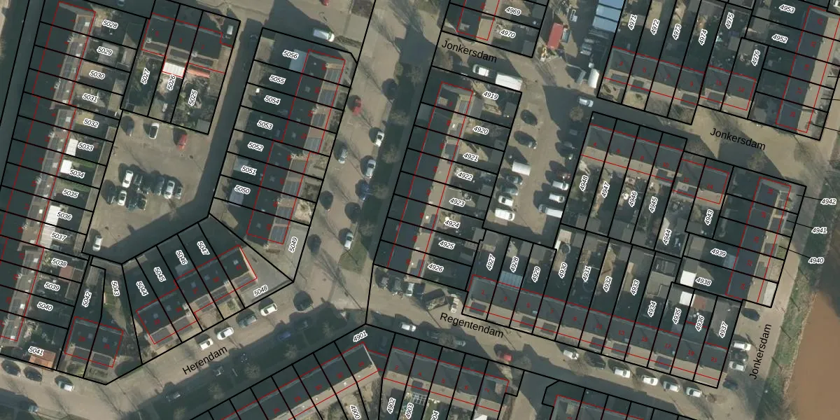 Gebruik de zoekbalk of klik op een perceel voor informatie over de adressen binnen dit perceel.