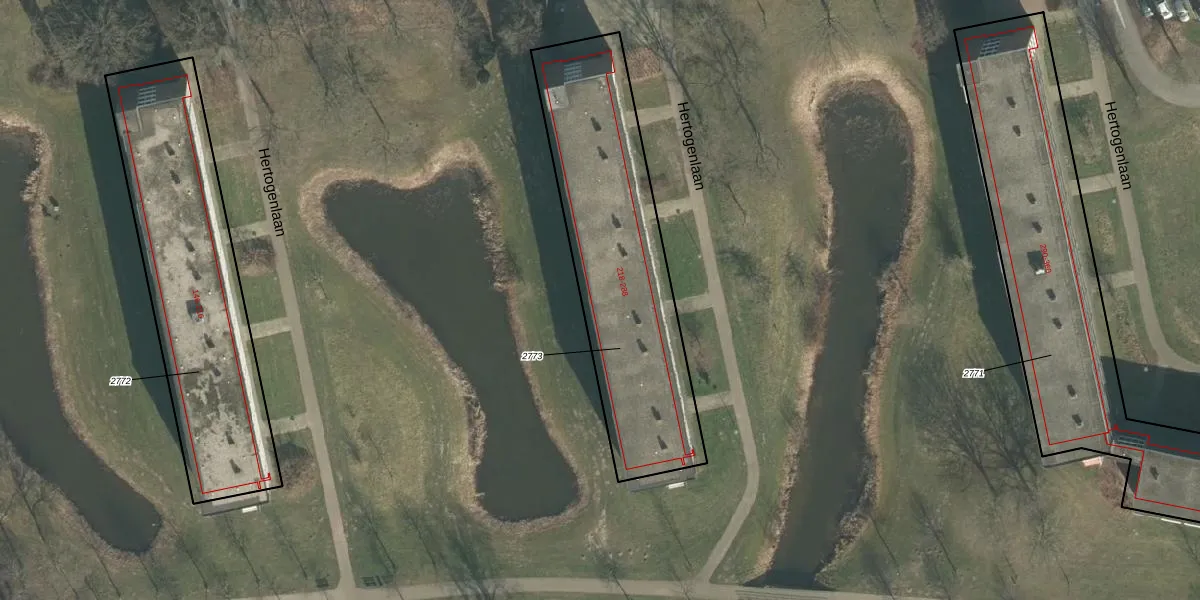 Het perceel waarop Hertogenlaan 282 staat heeft een oppervlakte van 1106 m². Dit is een zeer groot perceel. De perceeloppervlakte wordt geregistreerd door het Kadaster. Gedetailleerde informatie over de maten van dit perceel kunt u vinden in het rapport Kadastrale kaart met maatvoering van Hertogenlaan 282.