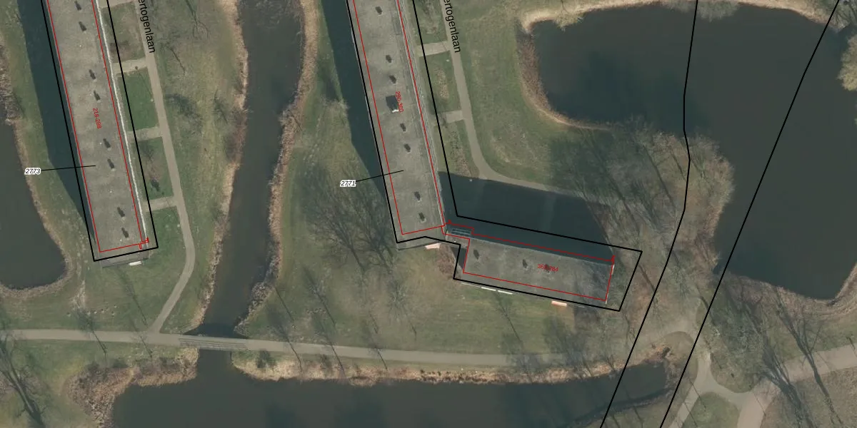 Het perceel waarop Hertogenlaan 296 staat heeft een oppervlakte van 1709 m². Dit is een zeer groot perceel. De perceeloppervlakte wordt geregistreerd door het Kadaster. Gedetailleerde informatie over de maten van dit perceel kunt u vinden in het rapport Kadastrale kaart met maatvoering van Hertogenlaan 296.
