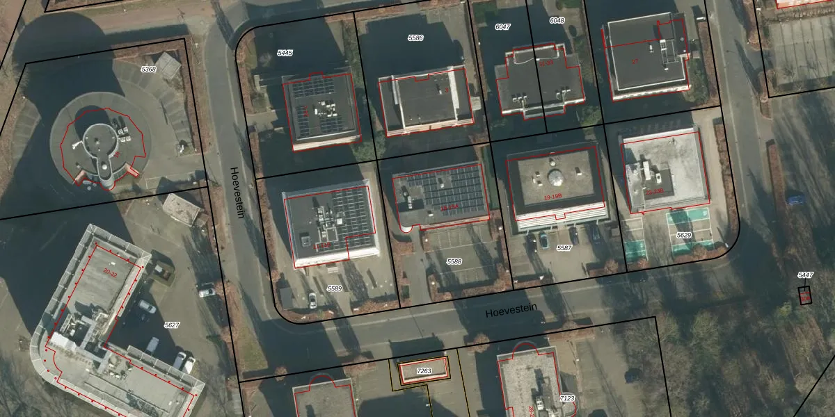 Het perceel waarop Hoevestein 15 staat heeft een oppervlakte van 990 m². Dit is een groot perceel. De perceeloppervlakte wordt geregistreerd door het Kadaster. Gedetailleerde informatie over de maten van dit perceel kunt u vinden in het rapport Kadastrale kaart met maatvoering van Hoevestein 15.