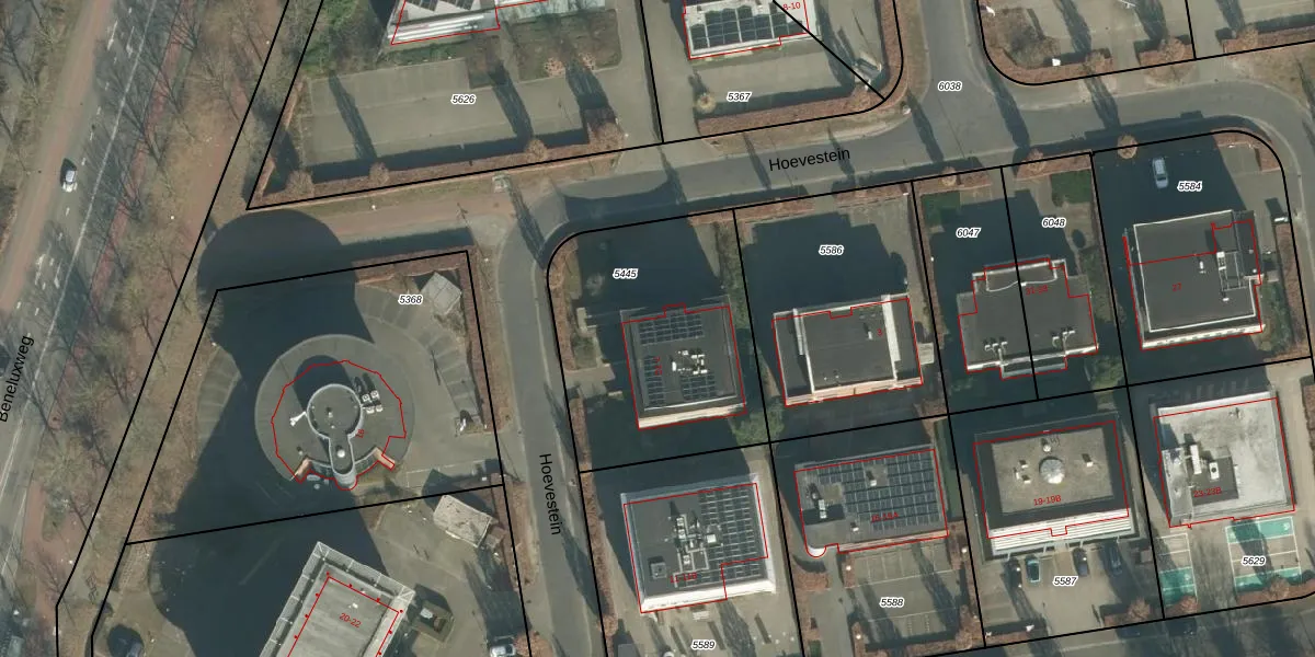 Het perceel waarop Hoevestein 7 staat heeft een oppervlakte van 1052 m². Dit is een zeer groot perceel. De perceeloppervlakte wordt geregistreerd door het Kadaster. Gedetailleerde informatie over de maten van dit perceel kunt u vinden in het rapport Kadastrale kaart met maatvoering van Hoevestein 7.