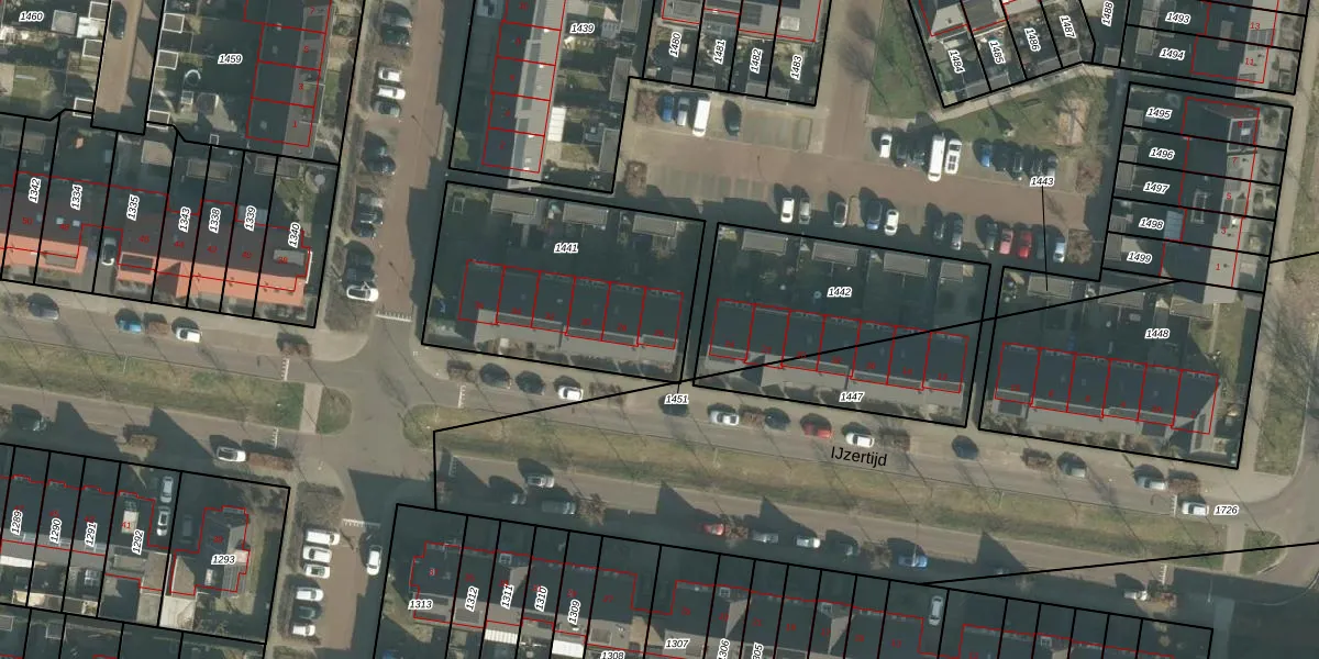 Het perceel waarop IJzertijd 26 staat heeft een oppervlakte van 988 m². Dit is een groot perceel. De perceeloppervlakte wordt geregistreerd door het Kadaster. Gedetailleerde informatie over de maten van dit perceel kunt u vinden in het rapport Kadastrale kaart met maatvoering van IJzertijd 26.