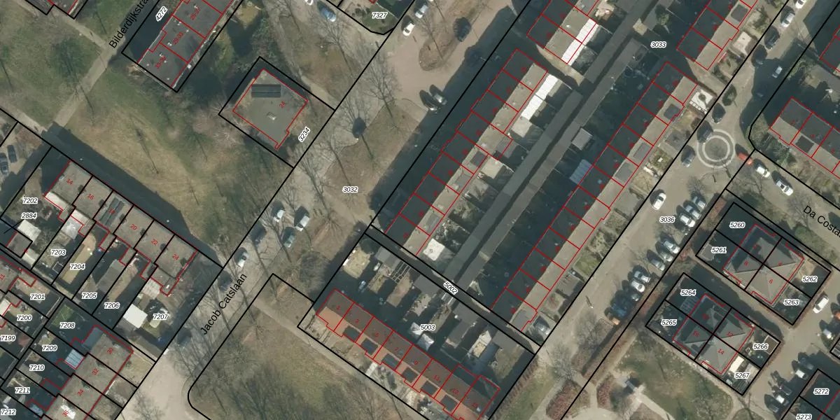 Het perceel waarop Jacob Catslaan 39 staat heeft een oppervlakte van 7830 m². Dit is een zeer groot perceel. De perceeloppervlakte wordt geregistreerd door het Kadaster. Gedetailleerde informatie over de maten van dit perceel kunt u vinden in het rapport Kadastrale kaart met maatvoering van Jacob Catslaan 39.