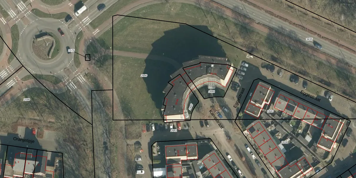 Het perceel waarop Karrestraat 57 staat heeft een oppervlakte van 342 m². Dit is een groot perceel. De perceeloppervlakte wordt geregistreerd door het Kadaster. Gedetailleerde informatie over de maten van dit perceel kunt u vinden in het rapport Kadastrale kaart met maatvoering van Karrestraat 57.