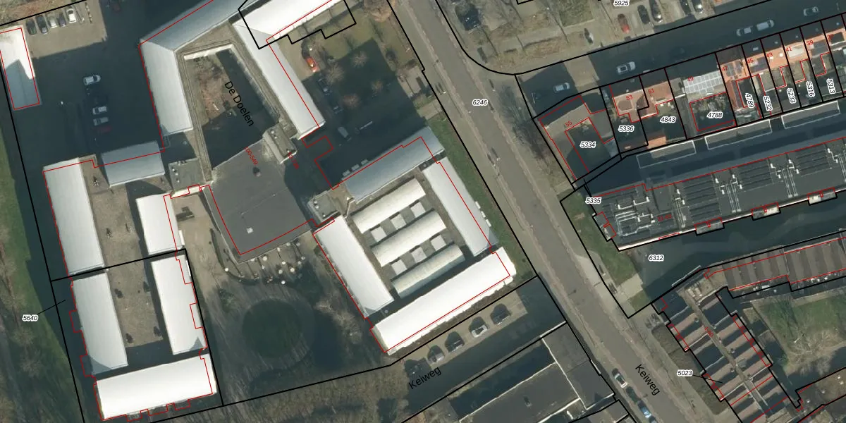 Het perceel waarop Keiweg 52-RO05 staat heeft een oppervlakte van 9790 m². Dit is een zeer groot perceel. De perceeloppervlakte wordt geregistreerd door het Kadaster. Gedetailleerde informatie over de maten van dit perceel kunt u vinden in het rapport Kadastrale kaart met maatvoering van Keiweg 52-RO05.