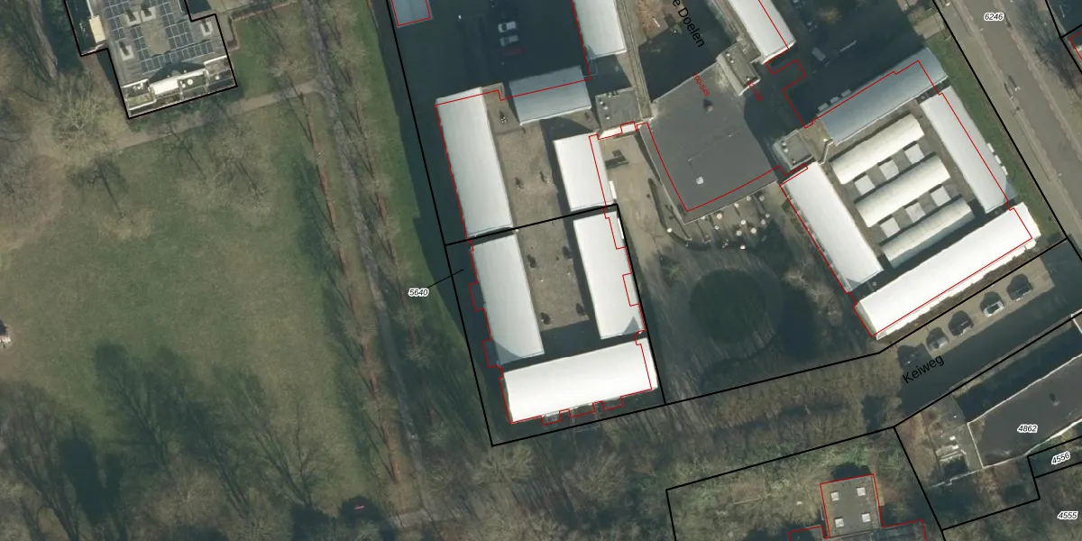 Het perceel waarop Keiweg 56-B staat heeft een oppervlakte van 1260 m². Dit is een zeer groot perceel. De perceeloppervlakte wordt geregistreerd door het Kadaster. Gedetailleerde informatie over de maten van dit perceel kunt u vinden in het rapport Kadastrale kaart met maatvoering van Keiweg 56-B.