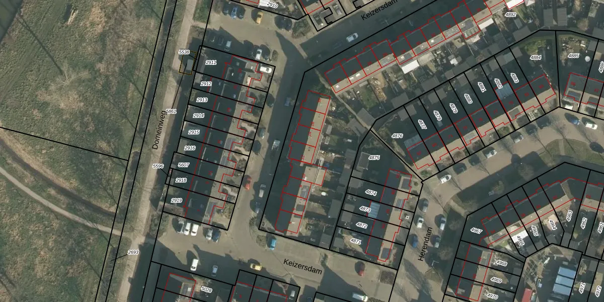 Het perceel waarop Keizersdam 12 staat heeft een oppervlakte van 4718 m². Dit is een zeer groot perceel. De perceeloppervlakte wordt geregistreerd door het Kadaster. Gedetailleerde informatie over de maten van dit perceel kunt u vinden in het rapport Kadastrale kaart met maatvoering van Keizersdam 12.