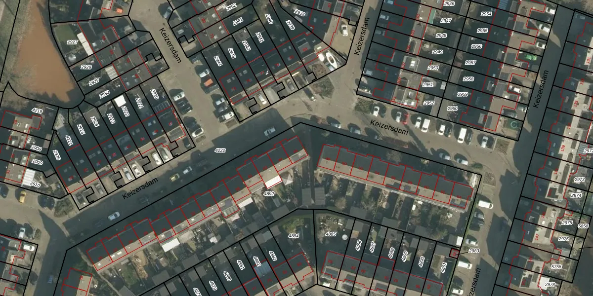 Het perceel waarop Keizersdam 46 staat heeft een oppervlakte van 4718 m². Dit is een zeer groot perceel. De perceeloppervlakte wordt geregistreerd door het Kadaster. Gedetailleerde informatie over de maten van dit perceel kunt u vinden in het rapport Kadastrale kaart met maatvoering van Keizersdam 46.