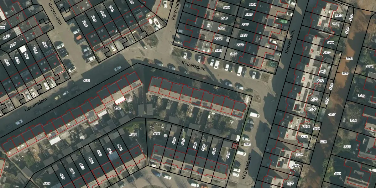 Het perceel waarop Keizersdam 54 staat heeft een oppervlakte van 4718 m². Dit is een zeer groot perceel. De perceeloppervlakte wordt geregistreerd door het Kadaster. Gedetailleerde informatie over de maten van dit perceel kunt u vinden in het rapport Kadastrale kaart met maatvoering van Keizersdam 54.