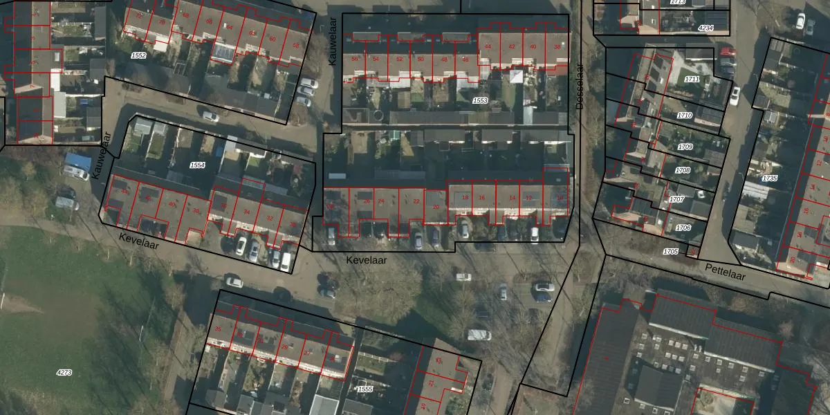 Het perceel waarop Kevelaar 22 staat heeft een oppervlakte van 3241 m². Dit is een zeer groot perceel. De perceeloppervlakte wordt geregistreerd door het Kadaster. Gedetailleerde informatie over de maten van dit perceel kunt u vinden in het rapport Kadastrale kaart met maatvoering van Kevelaar 22.