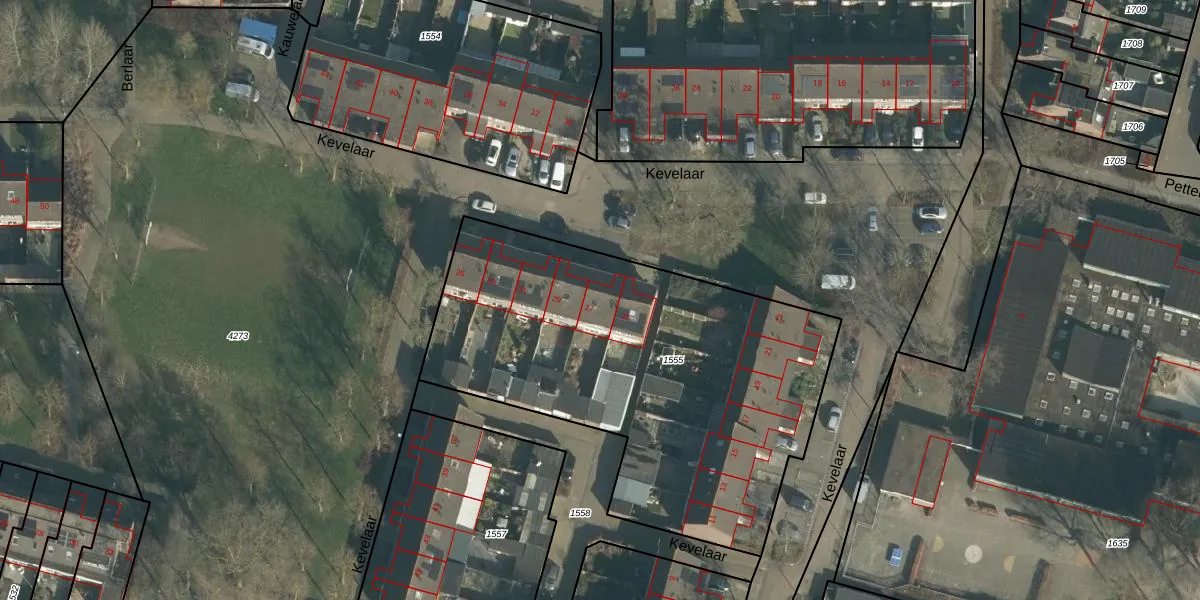 Het perceel waarop Kevelaar 27 staat heeft een oppervlakte van 2198 m². Dit is een zeer groot perceel. De perceeloppervlakte wordt geregistreerd door het Kadaster. Gedetailleerde informatie over de maten van dit perceel kunt u vinden in het rapport Kadastrale kaart met maatvoering van Kevelaar 27.