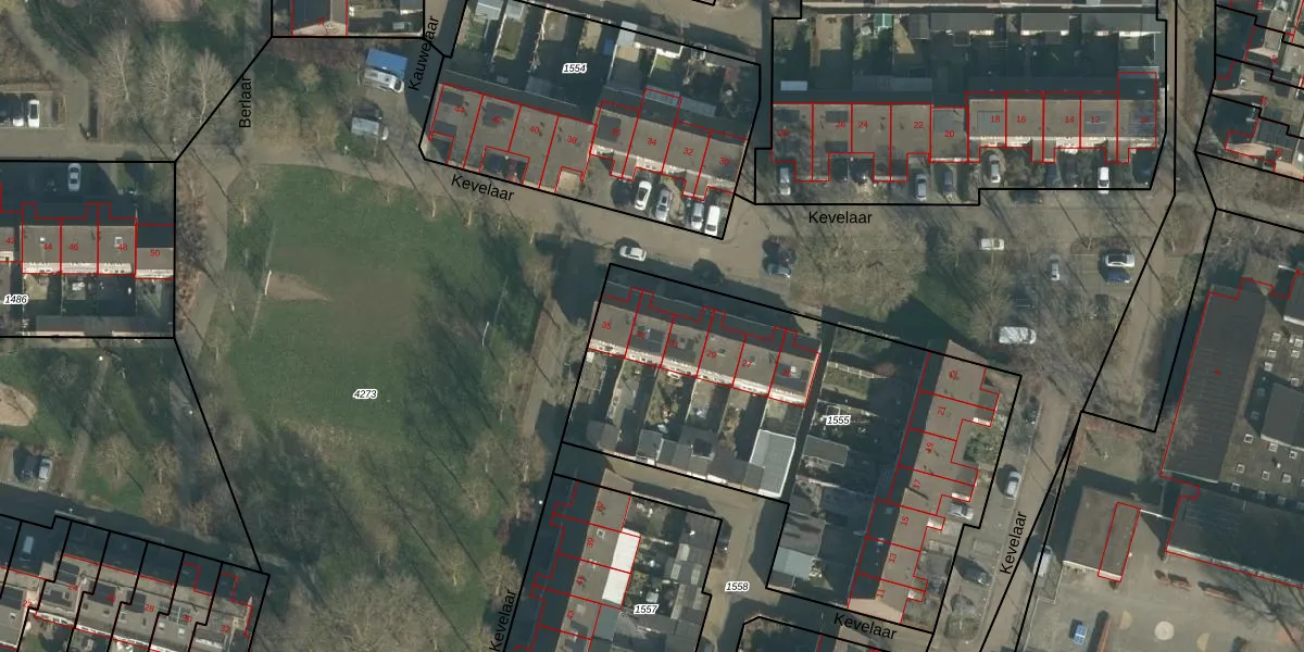 Het perceel waarop Kevelaar 33 staat heeft een oppervlakte van 2198 m². Dit is een zeer groot perceel. De perceeloppervlakte wordt geregistreerd door het Kadaster. Gedetailleerde informatie over de maten van dit perceel kunt u vinden in het rapport Kadastrale kaart met maatvoering van Kevelaar 33.