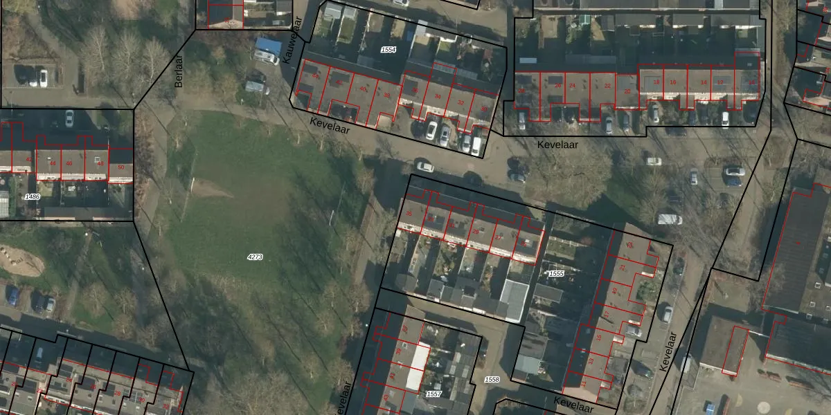 Het perceel waarop Kevelaar 35 staat heeft een oppervlakte van 2198 m². Dit is een zeer groot perceel. De perceeloppervlakte wordt geregistreerd door het Kadaster. Gedetailleerde informatie over de maten van dit perceel kunt u vinden in het rapport Kadastrale kaart met maatvoering van Kevelaar 35.