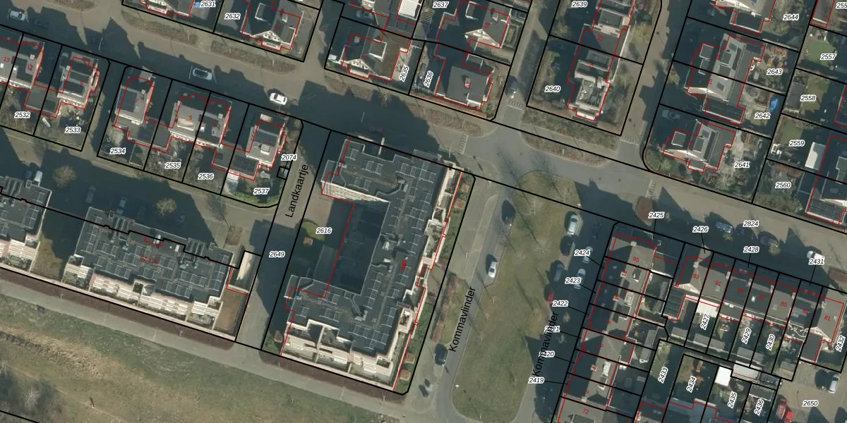 Kommavlinder 13 is gelegen op kadastraal perceel OTH01P2616. Deze kadastrale aanduiding is uniek en wordt gebruikt door het Kadaster om eigendomsrechten en andere zakelijke rechten vast te leggen. Het perceel maakt onderdeel uit van de kadastrale gemeente Oosterhout.