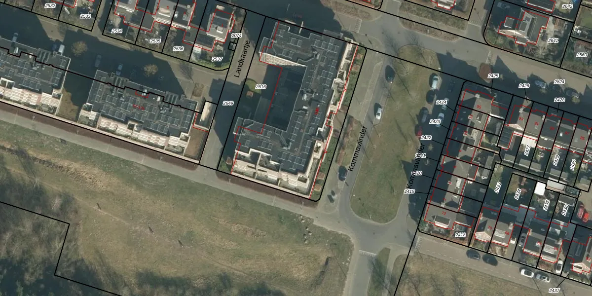 Kommavlinder 23 is gelegen op kadastraal perceel OTH01P2616. Deze kadastrale aanduiding is uniek en wordt gebruikt door het Kadaster om eigendomsrechten en andere zakelijke rechten vast te leggen. Het perceel maakt onderdeel uit van de kadastrale gemeente Oosterhout.
