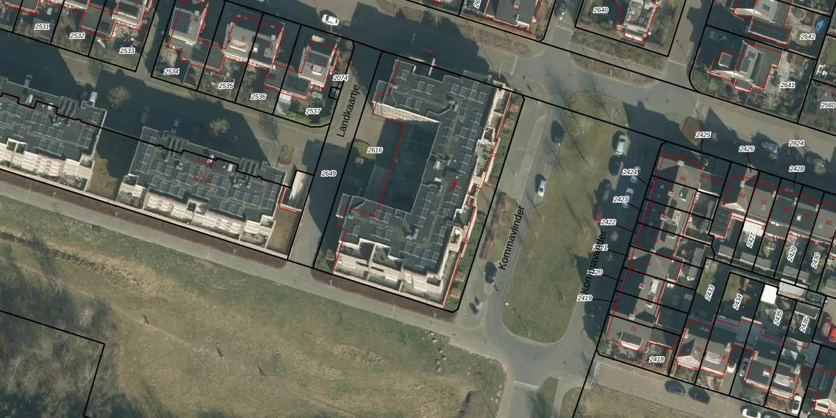 Kommavlinder 45 is gelegen op kadastraal perceel OTH01P2616. Deze kadastrale aanduiding is uniek en wordt gebruikt door het Kadaster om eigendomsrechten en andere zakelijke rechten vast te leggen. Het perceel maakt onderdeel uit van de kadastrale gemeente Oosterhout.