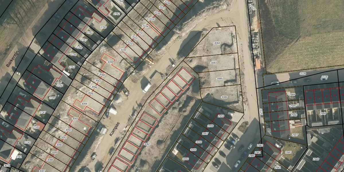 Het perceel waarop Kompas 54 staat heeft een oppervlakte van 2515 m². Dit is een zeer groot perceel. De perceeloppervlakte wordt geregistreerd door het Kadaster. Gedetailleerde informatie over de maten van dit perceel kunt u vinden in het rapport Kadastrale kaart met maatvoering van Kompas 54.