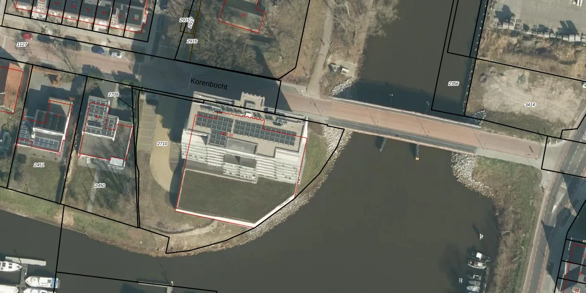 Korenbocht 100 is gelegen op kadastraal perceel OTH01Q2710. Deze kadastrale aanduiding is uniek en wordt gebruikt door het Kadaster om eigendomsrechten en andere zakelijke rechten vast te leggen. Het perceel maakt onderdeel uit van de kadastrale gemeente Oosterhout.