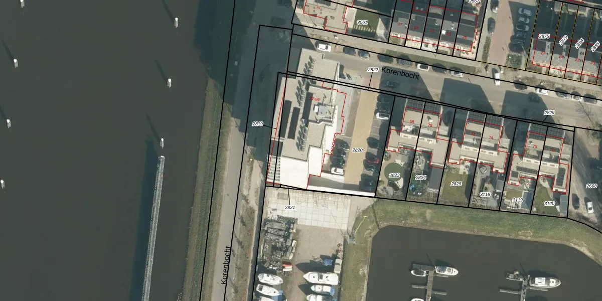 Korenbocht 44 is gelegen op kadastraal perceel OTH01Q2820. Deze kadastrale aanduiding is uniek en wordt gebruikt door het Kadaster om eigendomsrechten en andere zakelijke rechten vast te leggen. Het perceel maakt onderdeel uit van de kadastrale gemeente Oosterhout.