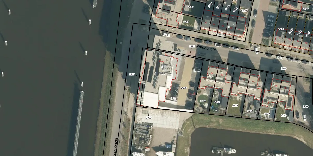 Korenbocht 46 is gelegen op kadastraal perceel OTH01Q2820. Deze kadastrale aanduiding is uniek en wordt gebruikt door het Kadaster om eigendomsrechten en andere zakelijke rechten vast te leggen. Het perceel maakt onderdeel uit van de kadastrale gemeente Oosterhout.