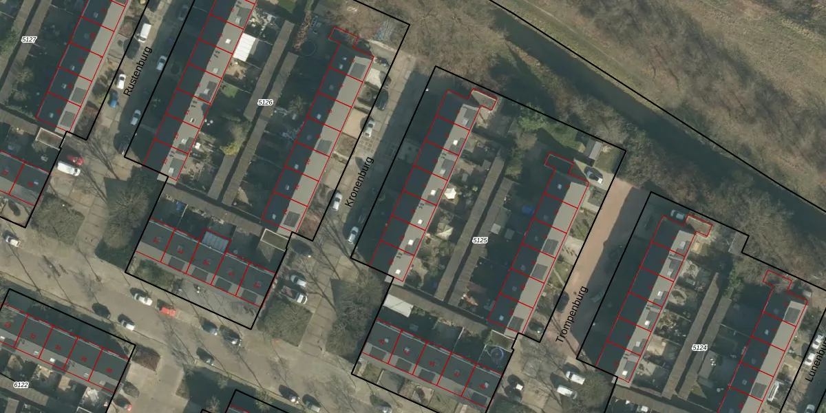Het perceel waarop Kronenburg 9 staat heeft een oppervlakte van 3400 m². Dit is een zeer groot perceel. De perceeloppervlakte wordt geregistreerd door het Kadaster. Gedetailleerde informatie over de maten van dit perceel kunt u vinden in het rapport Kadastrale kaart met maatvoering van Kronenburg 9.