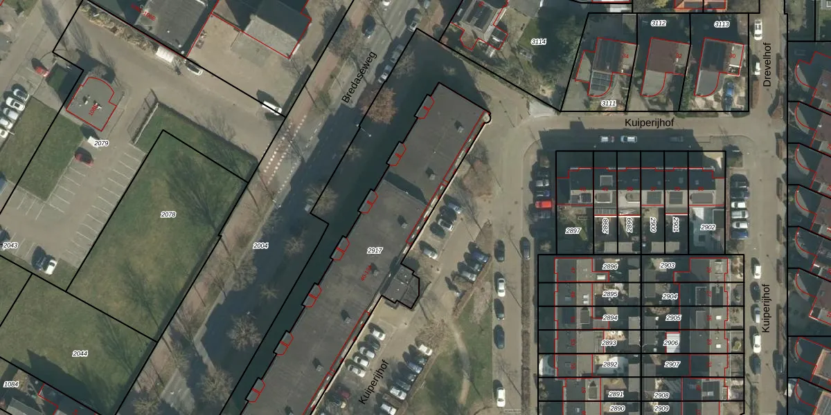 Het perceel waarop het adres ligt is OTH01-N-2917. De afkorting 'OTH01' staat voor kadastrale gemeente Oosterhout. Het perceel is 1464 m² groot. Dat is kleiner dan de gemiddelde perceeloppervlakte in Oosterhout, dat op 2771,9 m² ligt. De grootste perceeloppervlakte in de kadastrale gemeente is 75,9 ha. De kleinste oppervlakte bedraagt 0 m². Op het perceel liggen in totaal 48 adressen. De huidige grenzen van het perceel zijn digitaal in de Basisregistratie Kadaster (BRK) geregistreerd op 26-07-2006.