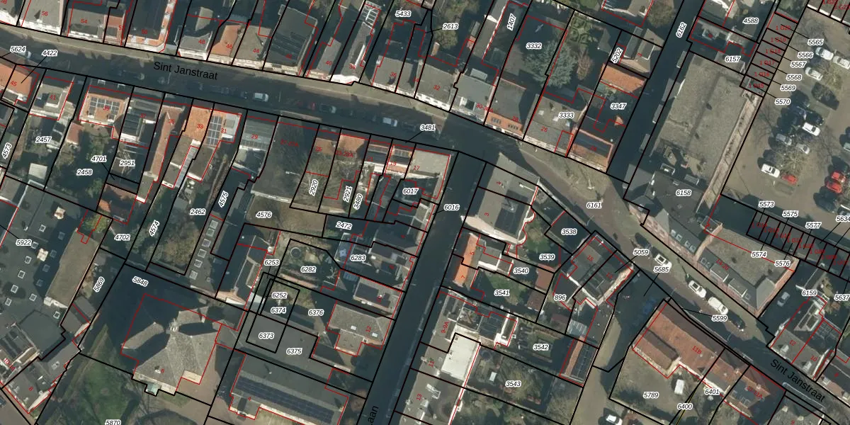 Het perceel waarop het adres ligt is OTH01-S-6016. De afkorting 'OTH01' staat voor kadastrale gemeente Oosterhout. Het perceel is 64 m² groot. Dat is kleiner dan de gemiddelde perceeloppervlakte in Oosterhout, dat op 2785,42 m² ligt. Het grootste perceel in de kadastrale gemeente is 75,9 ha. Het kleinste perceel heeft een oppervlakte van 0 m². Dit is het enige adres dat aanwezig is op het perceel. De laatste wijziging in het de Basisregistratie Kadaster (BRK) was op 07-11-2006.