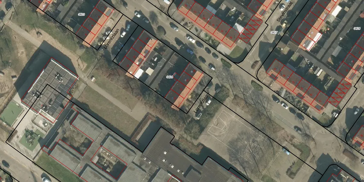 Het perceel waarop Lorentzlaan 22 staat heeft een oppervlakte van 1218 m². Dit is een zeer groot perceel. De perceeloppervlakte wordt geregistreerd door het Kadaster. Gedetailleerde informatie over de maten van dit perceel kunt u vinden in het rapport Kadastrale kaart met maatvoering van Lorentzlaan 22.
