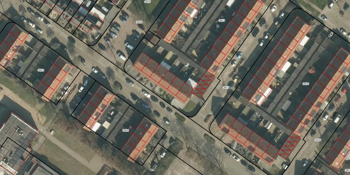 Het perceel waarop Lorentzlaan 33 staat heeft een oppervlakte van 4230 m². Dit is een zeer groot perceel. De perceeloppervlakte wordt geregistreerd door het Kadaster. Gedetailleerde informatie over de maten van dit perceel kunt u vinden in het rapport Kadastrale kaart met maatvoering van Lorentzlaan 33.